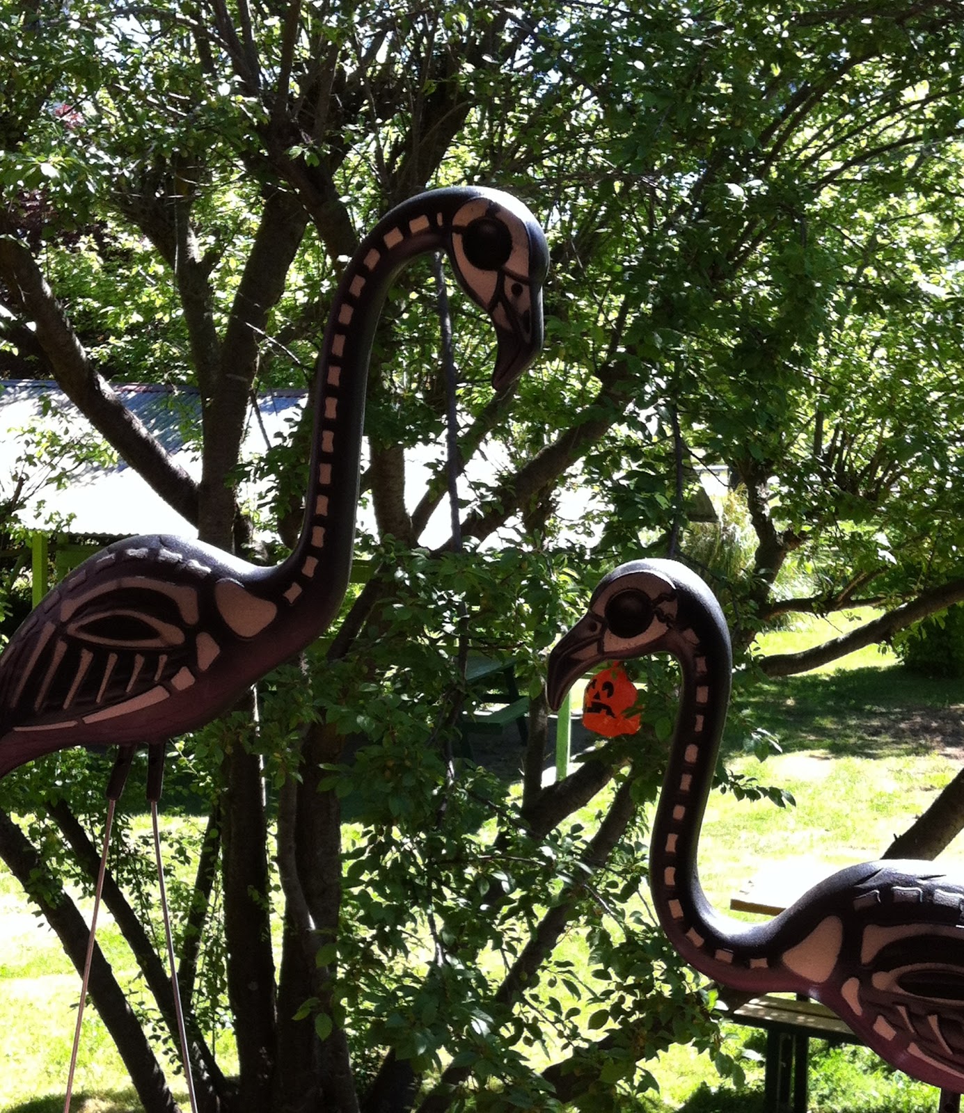 | Juan and Juanita, our Hallowe'en Flamingos, came out of hibernation especially for the occasion. They love a bit of spring weather! |